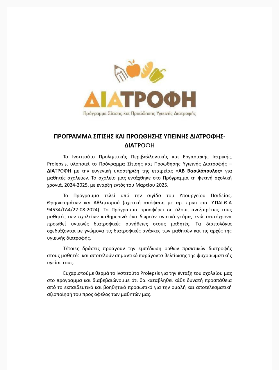 Στο πλαίσιο των συνεργατικών δράσεων μεταξύ των συμμετεχόντων σχολείων του eTwinning project: “Europe and its cultural specialties”, πραγματοποιήθηκε δράση όπου τα σχολεία της Γερμανίας, Γαλλίας, Ιταλίας, Πολωνίας και Ελλάδας παρουσίασαν παραδοσιακές συνταγές της χώρας τους. Το σχολείο μας παρουσίασε το εθνικό μας φαγητό «Φασολάδα», την οποία παρασκεύασαν οι μαθήτριες του Α3 τμήματος με την επίβλεψη και καθοδήγηση των εκπαιδευτικών της Αυτόνομης Διαβίωσης κ. Σαφάκα Ε. και Καραβία Μ. και των συντονιστριών του project κ. Παπαλεξοπούλου Ν. και Σταματελάτου Κ. Στην συνέχεια, αποτυπώθηκαν φωτογραφικά όλα τα στάδια παρασκευής της συνταγής, σε e-book(ψηφιακό βιβλίο), το οποίο αναρτήθηκε στην πλατφόρμα του eTwinning και είναι διαθέσιμο στο παρακάτω σύνδεσμο:
