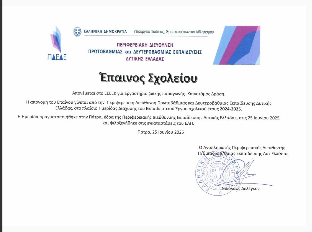 Αξιότιμες/οι κύριες κύριοι, καλημέρα και καλή σχολική χρονιά.